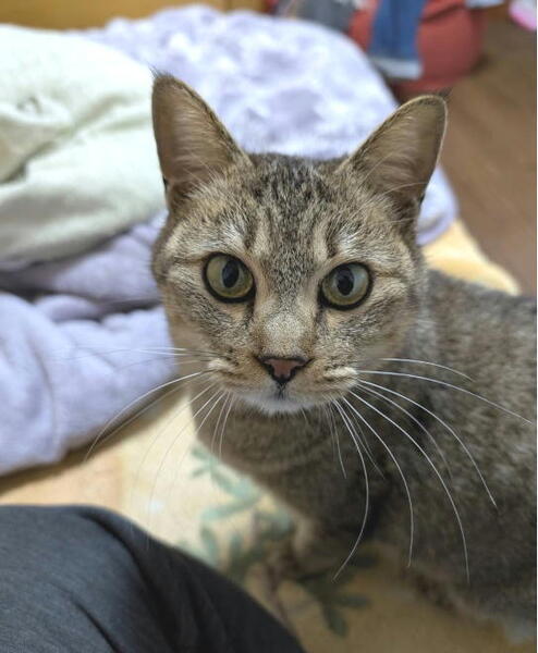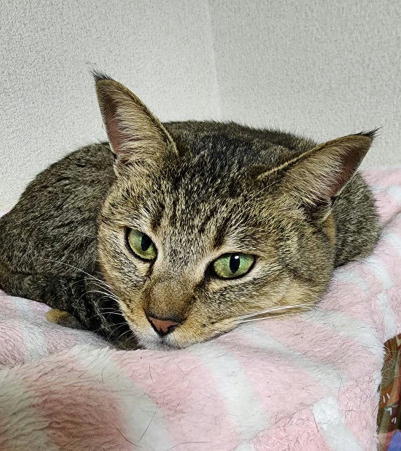 | 特徴(性格など) | 性格:人が大好き甘えん坊さんのメス猫です。温厚な性格、人に寄り添って来ます。スリスリ・ゴロゴロと猫たちの中でも一番の甘えん坊さんです。とても飼いやすい猫です。 医療面:健診済み・駆虫済・ノミダニ予防 三種混合ワクチン二回接種済み 血液検査の結果は、エイズ・白血病ともに陰性です。 不妊手術済み |