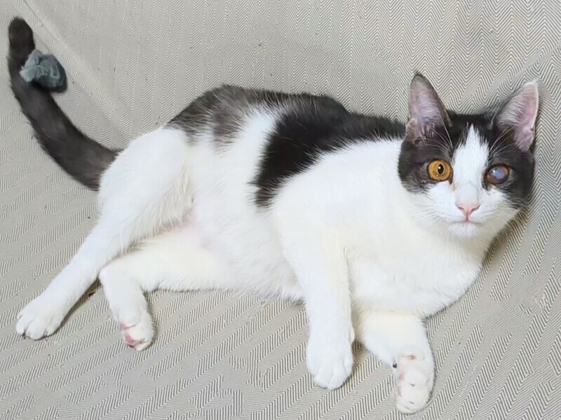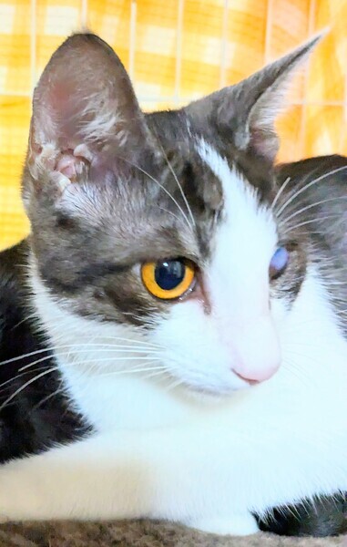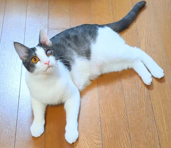 | 特徴(性格など) | 好奇心旺盛で良く戯れて遊んでいます 触られるのが好きでゴロゴロ、ペロペロ甘えてくれます♪ スキンシップ大好き♡ 水墨画みたいな色の珍しいハチワレちゃんです 目は保護時すでに外傷を負っていて見えなくなってしまってましたが、走ってジャンプして遊ぶし、他の猫ちゃんと何ら変わりなく元気です♪ 姉妹猫のすずや、私の手をペロペロ甲斐甲斐しく舐めてくれます 笑 先住猫ちゃんの居るご家庭でも仲良く出来ると思います |