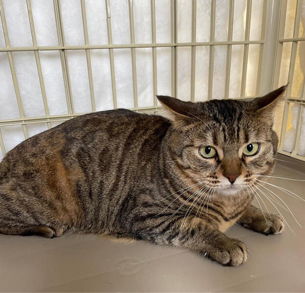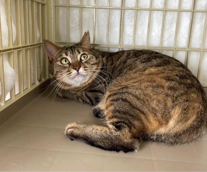 2/23譲渡会出場にゃんず キジトラ(キジ三毛)♀@約4歳(仮名)イジピジちゃん