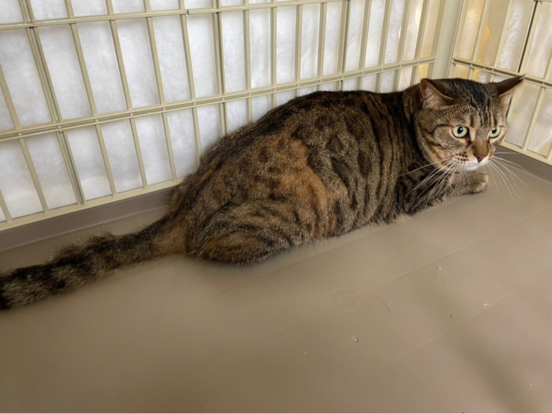 | 特徴(性格など) | 交通事故による大怪我でセンターに収容されていた子でした。 手術を乗り越え健康な体を手に入れ、幸せを求めて飛行機で上京した猫ちゃんです。 顔が大きく体の模様がベンガル猫みたいでかっこいいです。 元野良猫だったのでしょうが、とにかく人が大好きです。 自分だけを構って欲しいタイプなので、他の猫は嫌いです。 女王様タイプです。 飼い主さんにはベッドを共にするぐらいベッタリと寄り添ってくれる子です。 ~~~~~~~~~~~~~~~~~ 【性格】顔が大きいので一見オス猫っぽく見られがちですが、メス猫ちゃんです。 顔はキジトラ柄で体はベンガル猫柄という珍しい子です。 人が大好きで、元野良猫とは思えない程、太々しく(笑)家猫生活を満喫しています。 イジピジちゃんは交通事故!?による大怪我で熊本市のセンターに収容されておりました。 このままセンターにいたのでは殺処分の対象となってしまいます。 こんなかわいい子達の命を奪ってはならない!とそう思い『殺処分STOPプロジェクト』として現在までに197匹の猫達を空輸し、東京に連れて来たのが経緯となります。 連れて来た時の様子を宜しければYouTubeにアップしておりますのでご覧くだされば幸いです。 連れて来た時の動画はこちらをご覧ください。 https://youtu.be/3t2FG711L0o?si=Nkxb5wcx7_KsrNXQ 【必見!】カメラ嫌いですが、最近のイジピジちゃんの様子を撮影しました。ぜひ、ご覧ください! https://youtu.be/ZnOzJj_EiUc?si=KJNtQ2Da1Qq6U6Ot 【イジピジの健康状態について】 元野良猫出身だと思われます。 交通事故による骨盤骨折で熊本市のセンターに収容され、骨盤骨折の為の手術を受ける。手術の時に入れたポルトやプレートは取り除かれており、骨盤あたりを触ると骨が変形しているのは手術の名残です。 普通の猫と同じ運動能力を持つまで回復しているので健康面はご安心ください!と自信を持って主張させていただきます。 里親様にはレントゲン画像もお渡し致します。 とにかく『あたしだけを見て』『あたしだけを愛して』という典型的な構ってちゃんの女王様タイプ。 なので、1匹飼いで迎えてくださる飼い主さんを求めます。 その条件さえクリアしてくだされば、とても飼いやすい子です。 単身者の方でも60歳以上のご家庭でも(後継人が必要となります)にもオススメです。 成猫さんなのでフルタイムでお仕事をお持ちのご家庭でも問題なく迎えていただけます。 飼い主さんとなってくだされば、ベッドを共にするような子です。 自分を愛してくれる人にはベッタリな子です。 辛い手術を乗り越えて、熊本の野良猫っ子が女王様となる為に飛行機に乗って上京したのです。 シンデレラとなる為に… とてもかわいい子なのでぜひ!譲渡会に会いに来てください! よろしくお願い申し上げます。 |