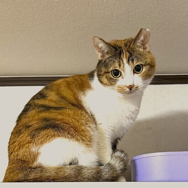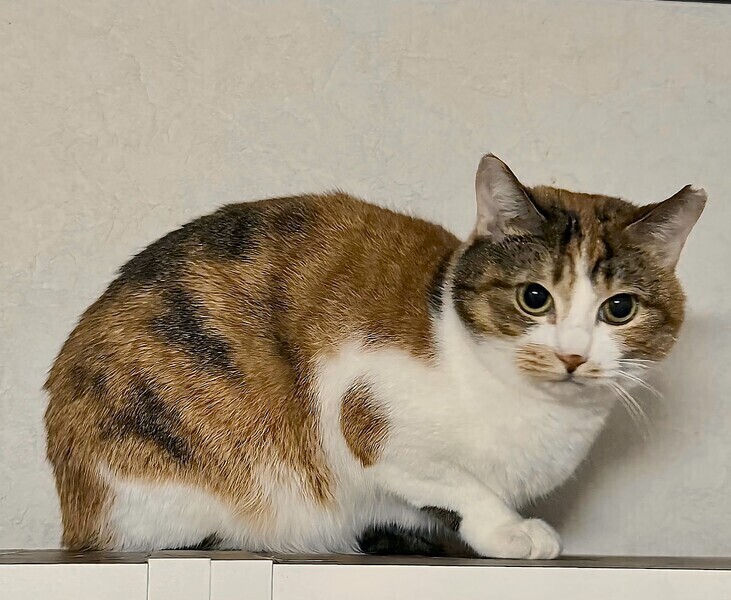 | 特徴(性格など) | 【仮名】ピノコちゃん 【性格】三毛猫推しにはたまらないピノコちゃん☆ まぁるいお顔にまぁるいおメメ♪ 口周りの模様がキュートな女の子♥ 少しシャイですが撫でられるのが好きで お顔周りを撫でるとオシリをあげて シャチホコスタイルを披露してくれます(笑) この時ばかりはスリゴロの甘えん坊になります♪ オモチャで遊ぶ時は目をキラキラさせて エキサイトしちゃうところも可愛いポイント! 猫が大好きな子なので先住猫ちゃんがいても 喜んでくっついて行くと思います♪ ※1ピキ譲渡可 |