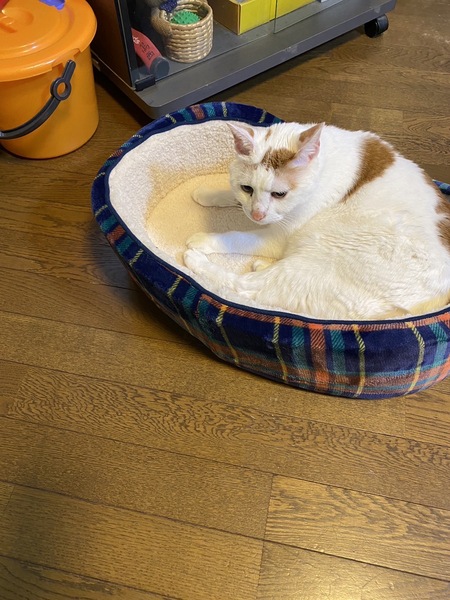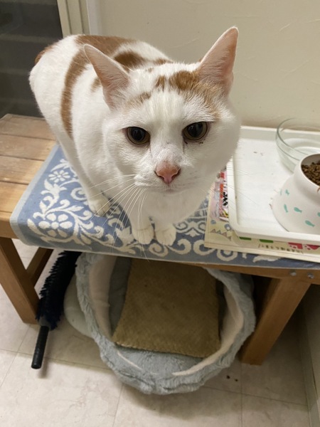 | 特徴(性格など) | 白い毛に茶色の斑点模様が可愛く、子猫の時からおなかがぽよぽよしています。(病院ではこういう体質と言われました) 性格は臆病で、飼い主以外に人見知りしますが、ゆっくりと時間をかけると膝に乗ってくれたりします。 ゆっくりと静かな環境で寄り添ってくださる方がいれば、穏やかに暮らしてくれると思います。 毎年ワクチンをしておりましたが、飼い主の病気が発覚した2024年のワクチンが打てていません。 これまで大きな病気にかかったことはありません。 (猫エイズ等陰性) 去勢済みです。 食事はドライフードを食べます。 遊び回ると言うより、寝ていることが多くなりました。 |