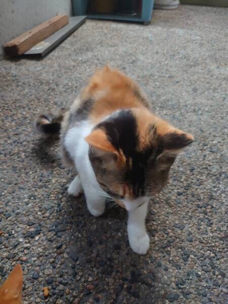 | 特徴(性格など) | 可愛いお顔の三毛猫ちゃん 呼ぶと「ニャ~」と返事をしてくれます ナデナデ出来ます 構いすぎると「シャー」とは言いますが、口や手がでるとこはないです 今では「シャー」はありません 撫でて欲しくてスリスリ~、膝の上に乗ってきてフミフミしています 体重は2.45kgです 白血病キャリアですがストレスなく生活すれば発症せずに生きられる子もいます 暖かいずっとのお家を希望します |