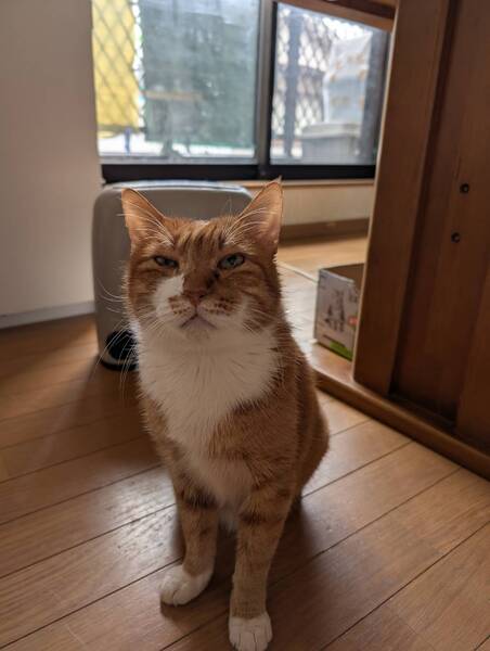 | 特徴(性格など) | すごく人馴れしていて穏やかです。他の猫たちと戯れたり寄り添って寝たりはないですがケンカもしません。 不満があっても低く唸る程度でパンチなどは出ません。 シュロと仲良しです。 |