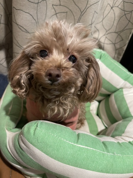 | 特徴(性格など) | 名前(仮):ジェミー 性別:メス 犬種:トイプードル 毛色:レッド 年齢: 2016/02/05 体重: 2kg 性格:寂しがりやの甘えん坊 トイレ: シート認識80% 散歩: とても上手に歩きます。 日常の様子:とても人懐っこく甘えん坊です。経験不足からの怖がりがありますが明るくとっても良い子です。 人と一緒に居れば大人しくくっついています。とても小さく足元に来るので注意が必要です。 お手入れ:毎月のトリミング・毎日のブラッシング・歯磨き・耳掃除・涙やけケアなど ※トリミング犬種なので、必ず毎月1回サロンでトリミングをして可愛く清潔にして頂ける方、それだけの経済的余裕がある方を希望します フード: ふやかしたフィッシュ4➕トッピング 健康状態 フィラリア:陰性(-) ワクチン:6種混合接種済み マイクロチップ:装着済み 避妊・去勢:手術済み その他:触診・聴診・血液検査・検便、異常なし、駆虫薬投与・ノミダニ駆除済み・スケーリング済み 特記所見★乳腺腫瘍手術済み パテラ3 |