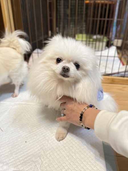 | 特徴(性格など) | 名前(仮): しろたん 性別: オス 犬種: ポメラニアン 毛色:ホワイト 年齢: 2016年9月23日 体重: 2.7kg 性格:とっても元気です。 犬には興味がなく人に甘えたいようです。フリーにしてるとずっとそばにいてペロペロします。 クルクル回る常同行動あり。 トイレ: シート認識30% ウンチは比較的シートで出来ています。トレーニング中。 散歩: ゆっくりですが歩けます。トレーニング中。 日常の様子:ゲージでお留守番しています。元気いっぱいです。 人が大好きでいつもそばにいる甘えん坊さん。食いしん坊で食べる事が大好きです。 お手入れ:毎日のブラッシング・歯磨き・耳掃除・涙やけケア・定期的なシャンプー・爪切り・肛門絞り・パット処理・トリミングなど ※サマーカットのように被毛を短く切ることはしないでください フード:フィッシュ4 保護日: 2025年2月11日 健康状態 フィラリア:陰性 ワクチン:6種混合ワクチン接種済み マイクロチップ:装着済み 避妊・去勢:済み その他:触診・聴診・血液検査・検便、異常なし、駆虫薬投与・ノミダニ駆除済み・スケーリング済み 。 特記所見★ 耳掃除やブラッシングを嫌がり、ケア中に噛む事があります(強い噛みではありません。) 心雑あり。 |