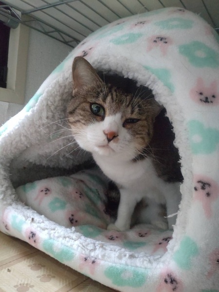 | 里親募集する理由 | ある会社の寮に住み着いて半野良のような生活をしていましたが、寮が引っ越すことになり次の場所には連れて行けないとの事で相談があり保護しました。 | ||