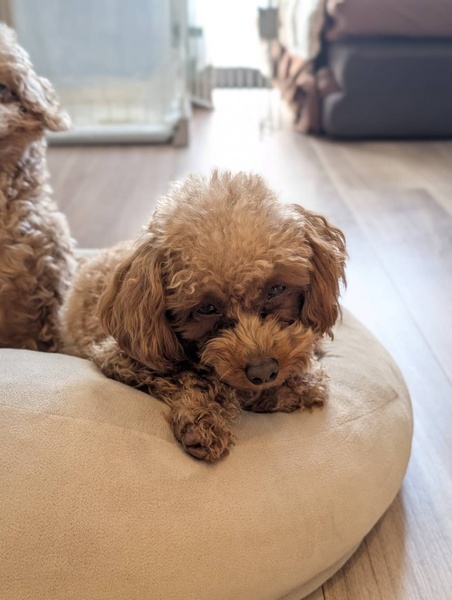 | 特徴(性格など) | 名前(仮):つぶら 性別:メス 犬種:トイプードル 毛色:レッド 年齢: 2021年8月生 体重: 1.7kg 性格:元気いっぱいのいたずらっ子。 トイレ: 練習中。シート認識40% 散歩: リードで散歩できます。 日常の様子 : わちゃわちゃとしています。おもちゃで遊んだり、他のワンコとプロレスしたり、段ボールやコードも噛みます。 お手入れ:毎月のトリミング・毎日のブラッシング・歯磨き・耳掃除・涙やけケアなど ※トリミング犬種なので、必ず毎月1回サロンでトリミングをして可愛く清潔にして頂ける方、それだけの経済的余裕がある方を希望します フード: ロイヤルカナン 保護日: 2025年2月11日 健康状態 フィラリア:陰性(-) ワクチン:5種混合接種済み マイクロチップ:装着済み 避妊・去勢:手術済み その他:触診・聴診・血液検査・検便、異常なし、駆虫薬投与・ノミダニ駆除済み・スケーリング済み 特記所見★左脚パテラLEVEL4 |