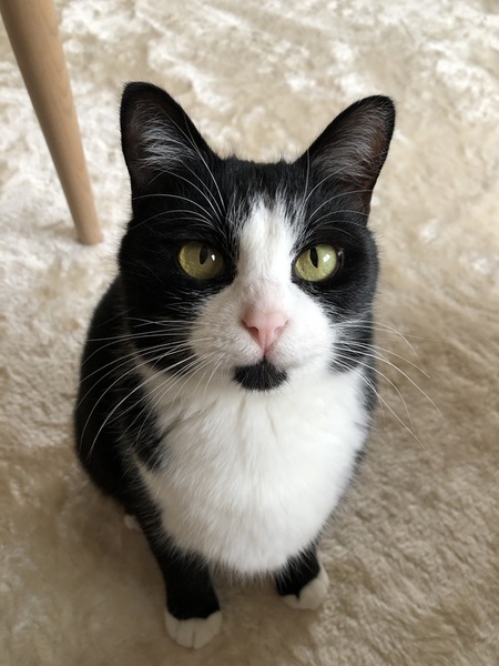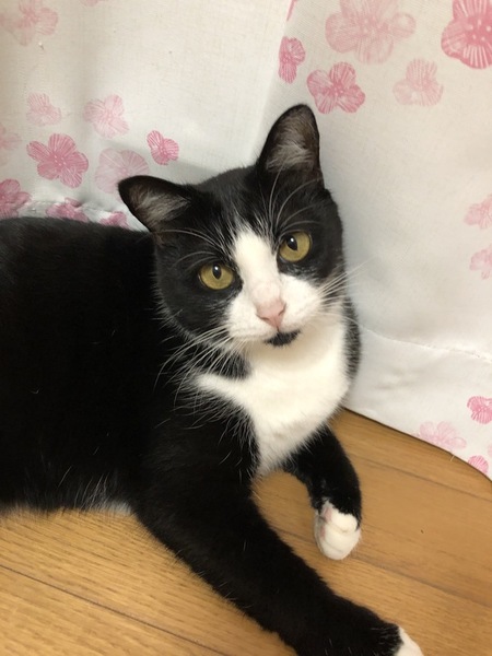 | 特徴(性格など) | 黒白のハチワレ猫 甘えん坊でとても可愛いです。 ソックスをはいたような手足 あごひげ模様も可愛いです 目の色はグリーンに見えたり ゴールドに見えます。 後ろから見たら黒猫です。 ゴロゴロスリスリ甘えています。 膝に乗ったり抱っこも好きです 白血病、エイズ検査済み。 陰性。 |