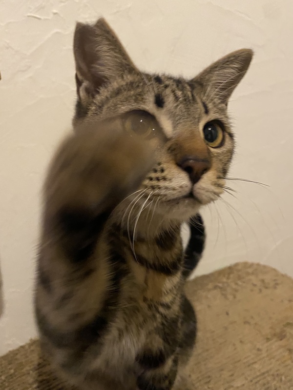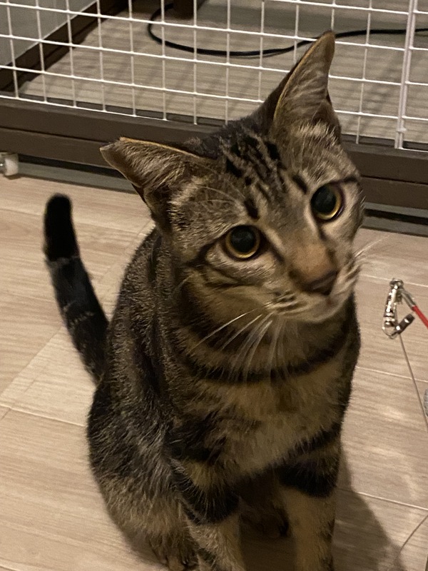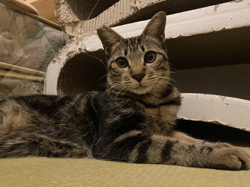 | 特徴(性格など) | キジ(マーブルタビー柄) 運動神経は抜群。 先住猫さんとも仲良くできます。 |