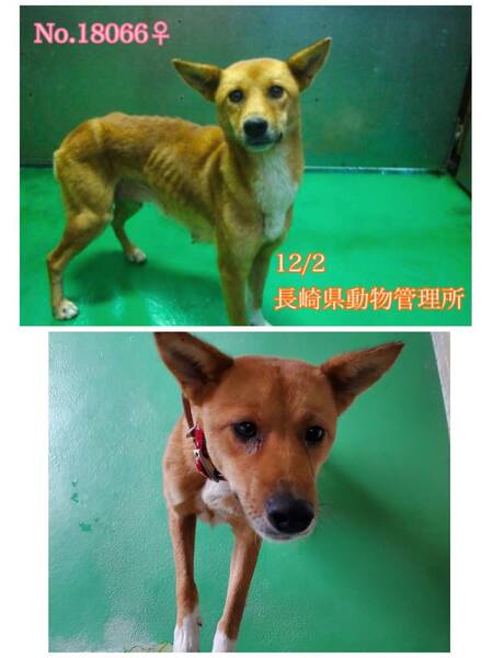 ↓ ♡とーっても人懐こくて甘えん坊の可愛い小柄な中型雑種、女の子ですฅ•ﻌ•ฅ 見た目の推定になりますがまだ若く3歳前後位?ガリガリに痩せていて体重は10キロあるか無いか位、可哀想に拭いても拭いても目やにが出てしまっていて心配です( ; ; ) 寂しく助けを待っています! 訳も分からず突然連れて来られてどんなに寂しく心細いか。一日も早く温かい家庭の中で過ごさせてあげたいです。 ⭐️県外、遠方の方でも譲渡の条件が合い、良縁に恵まれましたら里親になっていただけますのでどうぞ宜しくお願い致します! ※ ※長くなりますが犬猫と里親様の幸せの為にも、募集内容を熟読し、必ずご家族とよく相談をされた上、ご家族全員の賛同を得られてからのお問い合わせ をお願い申し上げます。 ⭐️外飼いでは無く、室内飼育で家族の一員として迎えて下さる方、「引き渡し方法」のところにあります【①〜のアンケート】にご回答と共に、お問い合わせをいただけますよう、お願い申し上げますm(_ _)m 長崎県大村市東大村付近にて猪避けの捕獲器に入って12/2に保健所収容、飼主の迎えは無く現在は長崎県動物管理所へ移送されてきています。保護時、首輪や胴輪などは何もついていませんでした。 (写真の首輪は管理所でつけた物です) いつから彷徨っていたのか放浪期間が長かったようで非常に痩せており肋骨が浮き出ています。空腹や寒さ雨風にも苦しんだことでしょう。その後は初めての知らない場所に収容されてずっと不安で心細いと思います。。 今までどう生きてきたのか…知る由もありませんが( ; ; )リードをつけてのお散歩を知らない様子でリードを怖がります。普通に飼育されてきた子では無さそうな印象です。。でも性格花丸ちゃんで、人が大好きで呼ぶと尻尾フリフリに擦り寄って来ますし抱っこも大丈夫、愛嬌たっぷりでお腹も見せてくれます♡ 殆ど吠えず他犬に威嚇したりもしません。 ◎収容当初から目やにがよく出ていてまだ治りません( ; ; ) ◎ 肋骨や骨盤が浮き出ている程、非常に痩せています。今は毎日2回、ご寄付で送っていただいた栄養価の高い良質なフード(テイストオブザワイルドとニュートロ)とデビフ缶詰を食べさせています。飢えに苦しんでいたようですし食欲旺盛!美味しそうにとてもよく食べているそうです(^^) 目の治療をしてしっかり栄養をつけたら、もっとツヤツヤの美犬ちゃんになる事でしょう(^O^)/ 優しい職員さん方が怖くないよ、今度こそは幸せになれます様にと毎日触れ合いながら、一生懸命にお世話してくださっています。 リードをして人とお散歩した事が無いのか?リードを怖がって途中で歩けなくなったりして抱っこで帰ったりしています。毎日頑張って練習中ですฅ•ﻌ•ฅ ※このような状態ですので急な物音や知らない場所にビックリして怖がって、咄嗟に逃げようとする可能性も大いにあり得る事だと思いますし、その時の力、引きの強さも想定し、突然の走り出しや高い塀や壁・柵の飛び越え・急な方向転換や首を振って後退りからの首輪抜け、胴輪抜けにはご用心です!! まだ呼び戻しも覚えていないので、もし逃がしてしまったらピューっと走って行ってしまうかもしれません!(>_<) もし逃がしたらもう捕まえられない!! という位にお考えくださいm(_ _)m ※繰り返しになりますがどんな子であっても、慣れてきても、常に、脱走・逃走には充分な注意と最大限の配慮をお願いしております! この子のペースや体力をみながら、躾や毎日朝晩のお散歩、トイレなど必要な運動の時間をしっかり取ることの出来るご家庭、 譲渡後には早急な病院受診が可能なご家庭を希望しておりますm(_ _)m 捨てられたのでしょうか、迷子でしょうか。 何故ここに居なければならないのでしょう。 人間よりはるかに短い犬生なのに。 何故大切な家族を直ぐに探さないのか、 何故最後の時まで愛せないのでしょうか… 言葉を持たない大事な家族を守る為に首輪、胴輪に迷子札・鑑札を必ずつけて頂きたい、そして、そんな悲し過ぎる状況のままでいたよりも無事に保護されて良かったと考え、この子に幸せを、温かい本当の本物の家族を見つけたいと願っております⭐︎⭐︎ 人間が焦らずにゆっくり見守りながら、愛情を持って接し、しっかりとお散歩にも連れ出して行けば、この子はきっと新しい家庭に馴染んでいけると、本当は思い切り甘えて目一杯遊んでほしいのだと思います。 辛かったであろう過去があるという点も踏まえ、人は怖くないんだよと、ずっと人を信じてくれる様に、広い心でドンとこい^_^と仰って頂ける方、この子をこの先もっと尻尾フリフリ♪で、ニコニコの笑顔にしてくださる方、いらっしゃいませんか? どうぞ宜しくお願い申し上げますm(_ _)m ⭐️必ず室内飼育で、譲渡後速やかに病院受診、健康診断、(血液検査、尿便検査、ノミダニ・フィラリア予防や爪切り、シャンプー等)混合ワクチン、避妊手術をする事が可能な、なるべくお留守番が少