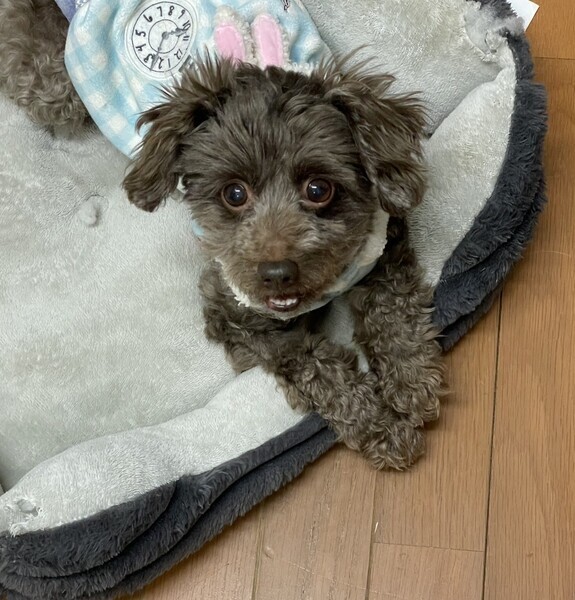 | 特徴(性格など) | 【はじめに】 ◉預かりブログ・HP・譲渡条件を必ず熟読の上、アグリドッグレスキューの専用フォームからご応募お願いいたします。 アグリドッグレスキューHP https://aguri.nomaki.jp/ 預かりブログ『Happy&Smile犬達との暮らし.アグリドックレスキュー』 https://ameblo.jp/happycocoeilu/ 譲渡条件 http://aguri.nomaki.jp/z.html ★【アグリドックレスキュー応募アンケートフォーム】★ http://my.formman.com/form/pc/HSiHA19xGo1sxlwu/ ぴっぴ(仮名) トイプードルMixの男の子 ・年齢 5歳〜8歳(推定) ・体重 3.3kg(12/13)適正体重4kg ・血液検査済 ・便検査済 ・尿検査済 ・フィラリア(陰性) ・混合ワクチン接種済 ・マイクロチップ装着済 ・去勢手術済 ・左足 膝蓋骨脱臼 グレード2 今後の医療措置 ・狂犬病予防接種済 ・スケーリング済 ・臍ヘルニア済 人が大好きな甘えん坊のトイプードルMixの男の子 性格 人が大好きな甘えん坊です。預り宅には小型犬・中型犬・大型犬がいますが、あまり興味がないようです。人にかまって欲しくて甘えたくて抱っこして欲しく側にきます。 最後まで愛し大切に守ってくださるご家族様との出会いをお待ちしております。 ご飯 カリカリフードにちゅーる等をトッピングして食べています。 カリカリフードのみだと残すこともあります。 お散歩 朝夕各30分程度のお散歩をしています。散歩始めは元気よく走ります。拾い食いには充分な注意が必要です。出会った他犬には上手に挨拶できます。 トイレ 家でも外でもトイレはできます。トイレシートの認識は9割程度です。男の子なので足をあげてするので注意が必要です。 お留守番 少しの間ですがキャンキャンと泣いています。また、長時間の留守番だとイタズラもします。 極力、お留守番の少ない家を希望します。 |