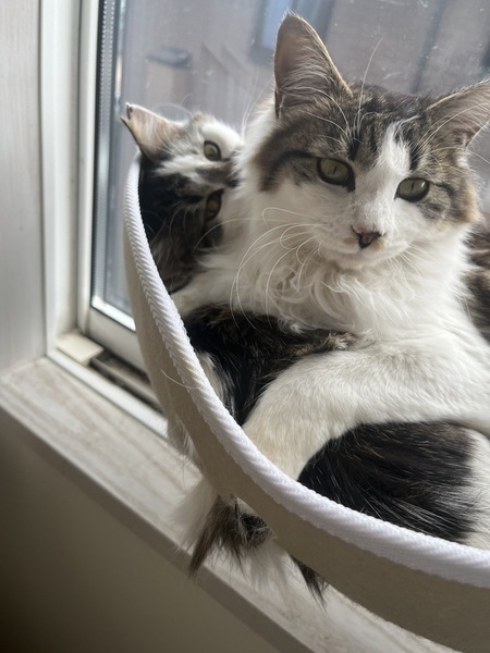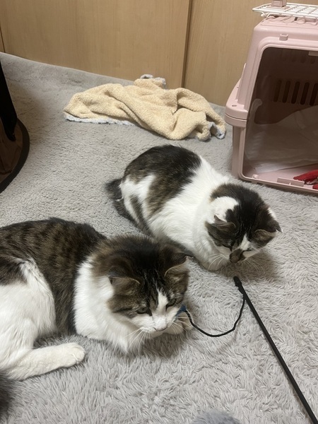 | 特徴(性格など) | 一枚目の子、とっても人懐っこく、ずっとゴロゴロスリスリの甘えん坊。お膝に抱っこも大好き。 毛が長めでフワフワの美猫ちゃんです。 2枚目の子、お鼻が黒いところと、しっぽが丸くて短くパンダさんみたいなところがチャームポイント。 性格は穏やかでおっとりさん。 遊ぶことが大好きでじゃらしに飛びついて喜びます。 二匹ともフワフワな中毛です。短毛と長毛の良いとこどり♪ |