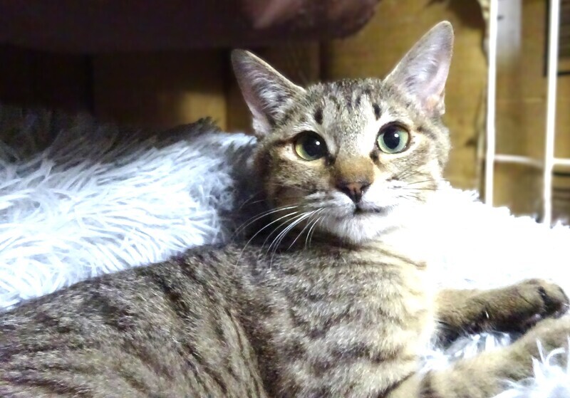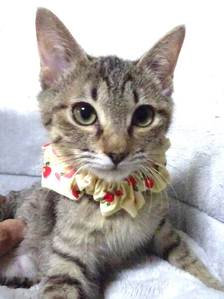 | 特徴(性格など) | 仮名: 奏(かなで)ちゃん、メス 毛色: 明るめのキジトラ、尻尾短め 性格: 保護時は怖がりで兄弟の後ろに隠れて引きこもり、手を出すと威嚇するような子でしたが、今は奥の方に行きがちですが、威嚇なく抱っこ出来るし、爪切りも薬も大丈夫です。ただ怖がりの面はあるので大きな音とかカメラ、大勢の人などは怖いようです。譲渡会などでは固まっています。 日頃は大人しいですが、兄弟が出て行ったので、一人遊びはしています。大人猫とはうまく付き合えるかわからないですが、猫社会の学習は出来ていると思います。 お届けは千葉県内で千葉市幕張から車で1時間圏内を希望します。 |