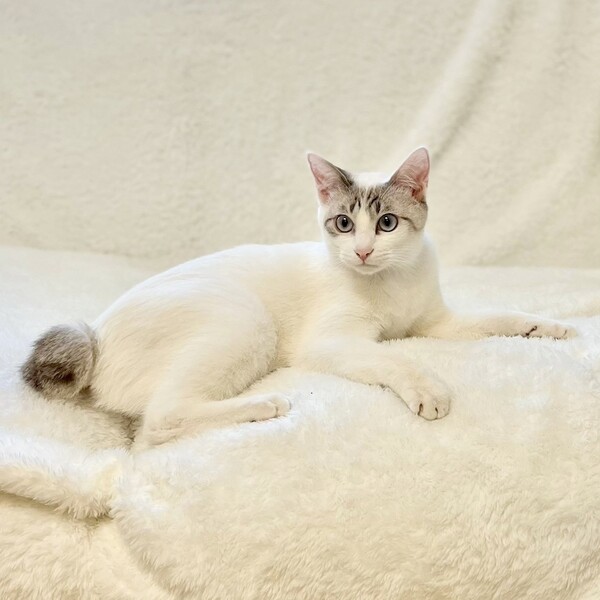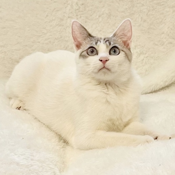 | 特徴(性格など) | 【仮名】ソフィアちゃん 【性格】うす~いブルーアイがたまらないソフィアちゃん☆ まだまだ家猫修行中です♪ ナデナデが気持ちイイと覚え始めました! オモチャには目がなく遊んでもらうのが大好き♥ ひと振りすればどこからともなく跳んできますw こんなカワイコちゃんがベタ馴れになったらたまりませんネ! ノビシロたっぷりなソフィアちゃんをよろしくお願いいたします。 いつも一緒に過ごしている兄妹のエドワードくんと お迎えしていただくとスムーズに馴染むかと思います。 ※1ピキ譲渡応相談 |