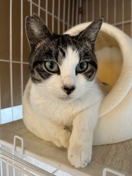 特徴(性格など) | 生まれつき右手にハンデがありますが、日常生活は問題なく送れます。 右手の肉球の位置が変異質なのでフローリングでは右手を挙げて歩きます。 ラグやカーペット等の柔らかい床材では四つ足で歩きます。 慎重派で、初めは場所見知り・人見知りをすると思います。 心を開いてからは甘えん坊さんに変身します♡ 女の子らしい性格で、甘えたい時は鳴きながらすり寄ってきます。 お転婆なタイプではなく、大人しく飼育しやすいと思います。 相性にもよりますが他猫に対しては気の強さが出たり、距離の取り方が上手ではないのでどちらかというと一人っ子向きです。 ●ノミダニ、駆虫済み ●エイズ/白血病:陰性 ●3種混合ワクチン済(2025.01.05) ●不妊手術済(右耳に耳カットあり) ●マイクロチップ装着済 保護当日からの日々をInstagramハイライトでご覧いただけます。人馴れしていく様子を是非覗きに来てください。 https://www.instagram.com/neconection_yokohama?igsh=a2Y2dnZvbDFqdDBu&utm_source=qr |