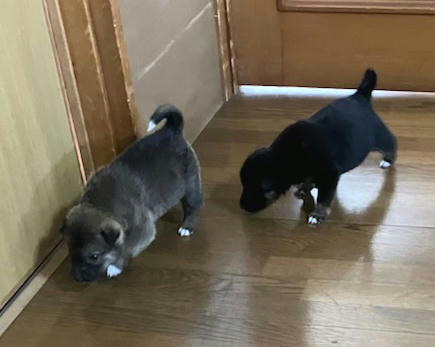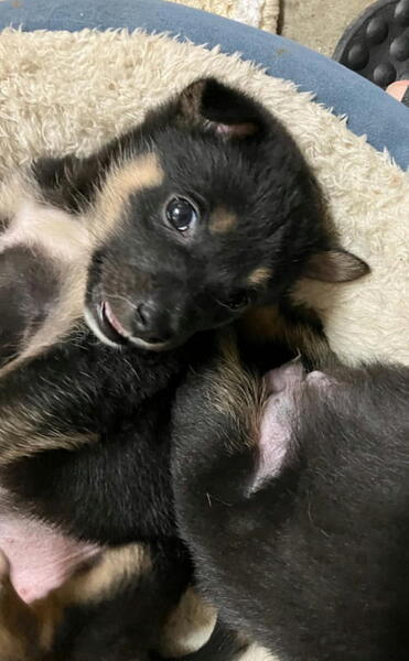 | 特徴(性格など) | 乳飲み子の子犬たちをセンターから引き取りました。人の手により育ちましたので人が大好きな甘えん坊さんです。それぞれに個性が表れ始めました。 医療面:健診済み・ノミダニ予防 今は、まだワクチン未接種ですが、 生後二ヶ月頃になると初回ワクチン接種を予定しています。 譲渡はワクチン接種済みで対応させて頂きます。 |