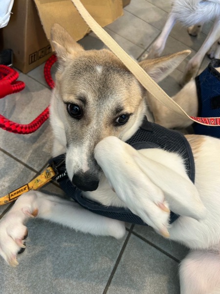 | 特徴(性格など) | 名前:ハナ 性別:女の子 年齢:2023年10月生まれ 体重:11kg 犬種:雑種 毛色:白グレーベージュ ワンコ同士で遊ぶのがとても好きです。普段はおとなしく穏やかに過ごしています。 お散歩は上手にできますが、少し怖がりなところがあります。 特にお子さんとの接触がなかったので怖がりますが、静かに見守ることのできるお子さん、野犬の飼育経験のあるご家庭を特に希望いたします。 |