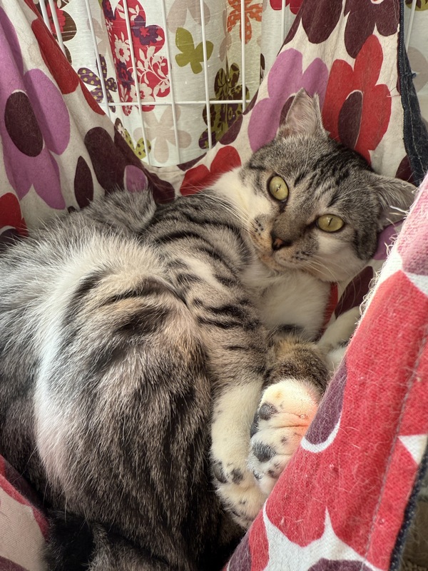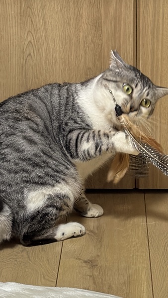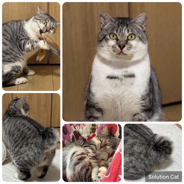 | 特徴(性格など) | 性格は人慣れしていて遊ぶのが大好きです。 なでなでも大好きです。抱っこはまだハードルが高いです。 握手もしてくれます。わりと穏やかで他の保護猫たちとも程よい距離間でうまくやっているので先住ちゃんがいても問題がないかと思われます。 特徴はなんと言ってもピコピコしっぽ! 写真を是非ご覧ください。 顔も目も体型もまんまるで可愛いです。体重約5kgほどです。 好きなものはおもちゃで遊ぶこと、おやつ、ごはん。 嫌いなものは掃除機、キャリー といった感じです。 |
