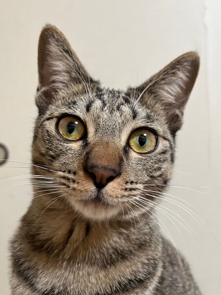 | 特徴(性格など) | 2024.4.14生まれ(推定) 毛色:キジトラ 長いまっすぐシッポ、お目々くりくりのキジトラの女の子です。 超甘えん坊&食いしん坊!! 人も猫も大好きで、よく猫団子や膝の上に乗ってきます♡ また食べるのが早く、姉妹や先住猫のご飯をいつも狙ってます。 もちろんチュールは膝の上の1番良い席で食べます。 遊ぶのも大好きで、走り回ったり、ジャンプしたりとずっと遊んでいます。 クラッキングが得意です♪ |