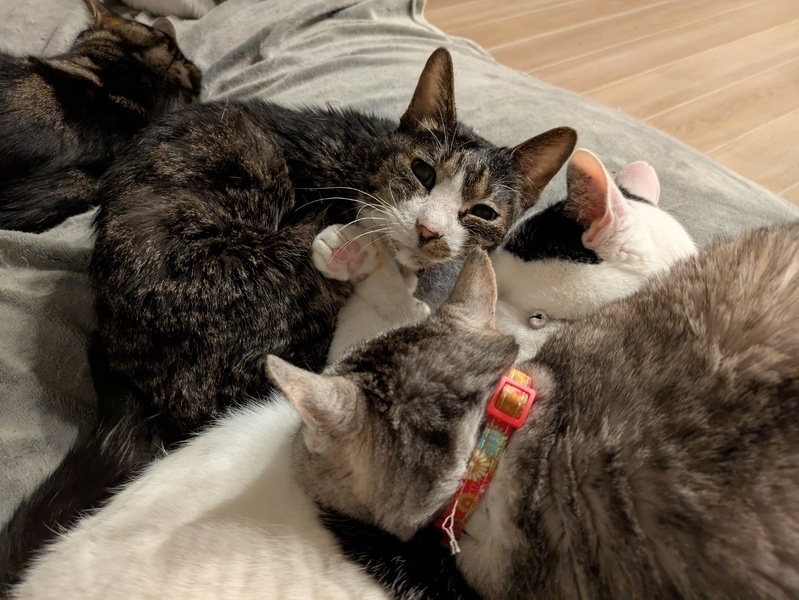 | 特徴(性格など) | 色柄 キジ白 性格 ・撫でられるのが好き ・穏やかで静かです ・大人しい ・ちゅ~る、ウェットフードが好き ・何か食べたいとき訴える ・ゆったりしてる ・猫となかよし ・イタズラはしません |
