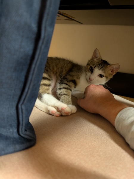 | 特徴(性格など) | 2024年夏生まれ 推定7カ月の女の子です。 少しビビリだけど活発な女の子です。 しっぽは鍵しっぽ。 玩具でもよく遊びます。 お留守番もできます(^^) TikTokで動画配信中です。 トイレトレーニング済 避妊手術済 白血病 エイズ検査 陰性 ノミ・ダニ駆除済 4/12 2度目の3種混合ワクチン接種済み |