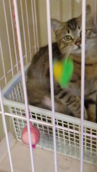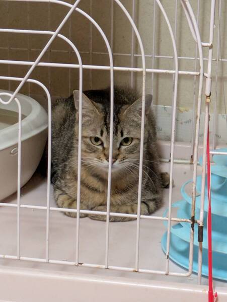 | 特徴(性格など) | キジトラ柄です。おとなしくてかわいい子です。保護したときからシャーも爪をたてることもありません。月齢のわりには小柄な子です。 まだ抱っこはできませんが、成長を楽しみながら家族の一員にしていただける里親様からのご応募をお待ちしております。 |
