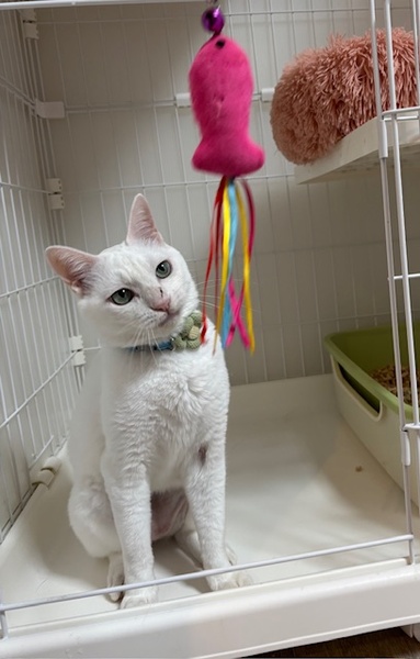 | 特徴(性格など) | ☆☆☆ご希望の方は、以下のアンケートフォームにご記入の上、送信してください☆☆☆ ねこ親希望アンケート→ http://chibawan.net/contactform_cat 【猫No】3904 【愛称】いよ 【性別】メス 【年齢】推定5才(20/03/14頃生) 【毛色】白 【体重】3.2kg(2025/04/25) 【状態】 不妊手術済、ワクチン接種済(25/01/31)、血液検査済(エイズ−、白血病−)、マイクロチップ装着済、ノミダニ駆除済、駆虫済、トイレ躾済 【預かり場所】 我孫子市 【日記】https://www.instagram.com/pupu_pipi_edamame/?hl=ja Instagram @pupu_pipi_edamame 【経緯】千葉県動物愛護センター東葛支所より引き出し 【性格】 初めての場所、初めての人には緊張して固まってしまいますが、撫でられるのはとっても好きです。 控えめな性格ですが、「猫じゃらしで遊びたい!ちゅーるも食べたい!でも他の子がいると遠慮しちゃう…」 そんないよちゃんの性格を受け入れてくれる家族に出会えたらいいなと思っています。 普段の生活などインスタに載せていますので是非見てください。 【備考】環境の変化などで体調の急変なども考えられる為、速やかに動物病院を受診してくださる方を希望します。 【その他】 以下の条件をご快諾頂き、預かり宅から1時間半以内のご家庭からのアンケートをお待ちしております。 ・愛情いっぱいの終生飼養 ・ネコにあった生活スタイル ・完全室内飼育および脱走防止対策、ゲージの設置 ・定期的なワクチン接種などの健康管理 ・譲渡後も猫の様子をご連絡頂ける方 なお、お世話をする方がご高齢の方、単身者のお申し込みにつきましては、お断りする場合がございますので予めご了承ください。 |