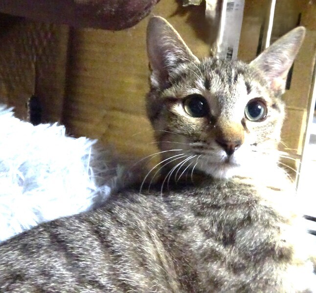 | 特徴(性格など) | 仮名: 奏(かなで)ちゃん、メス 毛色: 明るめのキジトラ、尻尾短い 性格: 保護時は兄妹の影に隠れていたし、奥のほうに引きこもって威嚇していたので、怖がりです。 慎重だし、ビビりなので、懐くのに時間がかかっていますが、今は、自分から近づいてきたり、そっと頭をスリスリしてきたり、抱っこするとゴロゴロ言ってみたり・・・でも、その後、いけな~い、甘えちゃったわ、という感じです。 時間をかける必要はあるかと思いますが、確実に馴れてきていますので、ゆっくりと見守ってくださるご家庭を希望しています。 大人猫とはうまく付き合えるか、今はまだわかりません。 少し小柄ですが、兄妹も小柄です。 お届けは千葉県内で、千葉市幕張から車で1時間位を希望しています。 |
