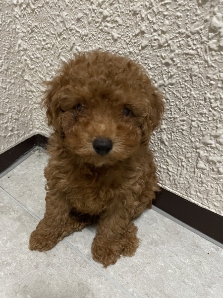 | 特徴(性格など) | とても色の濃いレッドの男の子です。何にでも興味があり、帝王切開で産まれたため早くから人と触れ合ってます。ドワーフタイプ 3月15日2回目のワクチン接種済みです 10種ワクチン2回済んでいますので 残り1回 と狂犬病ワクチンを済ませて頂けたら お好みのカット・お散歩デビューが 早ければ4月下旬にはできます^^ |
