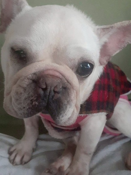 | 特徴(性格など) | ■特徴(仮の名前:キラリ) フレンチブルドッグ ♀ 推定6-7歳 体重8.9キロ ■性格・暮らし ・人が大好きな甘えん坊です。 ・ペットシートの認識はありますが、失敗もあります。 ・食べることが大好きです。 ・お散歩は上手に歩けます。 ・他犬とは相性があります。 ・右目は視力なしですが、日常生活に支障はありません。 ■今までに行った医療行為 ・避妊手術 ・混合ワクチン接種 ・フィラリア抗原検査(ー) ・検便 ・歯石除去 ・血液検査 ・マイクロチップ装着 ■今後行う予定の医療行為 ・特になし |