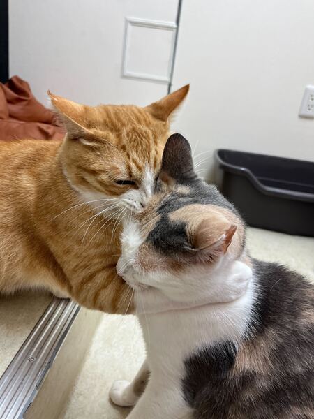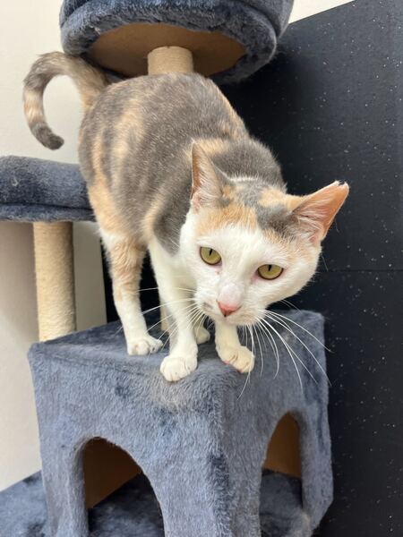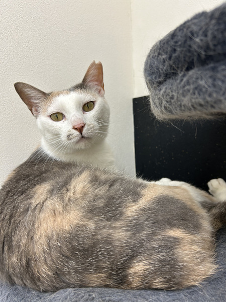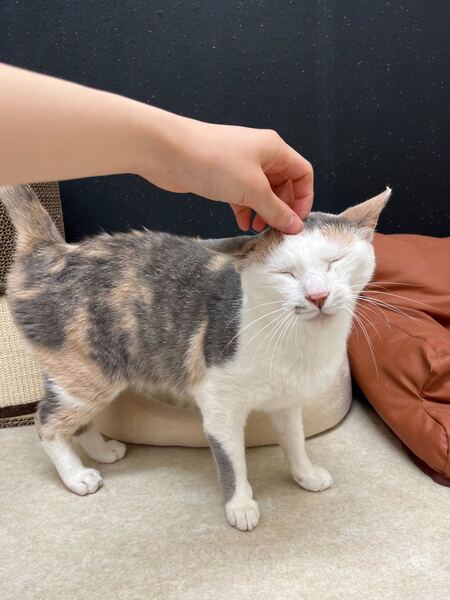 | 特徴(性格など) | すりすりするのが大好きな女の子です! 多頭飼育崩壊してしまったお家から保護されました。 それでも愛情持って育てられていたようで、怯えることなくスタッフに擦り寄ってきます☺️ とっても甘えん坊で、お掃除中はいつも構って欲しくてすり寄ってきます 初めての人にもすぐに慣れてすり寄ってきます。撫でて〜と手に頭突きしてきます笑 足元に擦り寄っていつも毛だらけになってしまいます。 同室で過ごすそら君ともとっても仲良し! ご飯も大好きな食いしん坊さんです! 現在の健康状態は良好です。猫エイズ(FIV)陽性ですが、発症はしておらず元気いっぱいです。 ※猫エイズ(FIV)は猫同士の喧嘩による咬傷でのみ感染し、人間や他の動物には感染しません。また陽性であっても多くの猫は何年も健康に暮らせます。単身飼育が必要ですが、愛情たっぷりの家庭で幸せに過ごせる子です♪ 薄い三毛の美人さん、尻尾がすらっと長くてかわいいです? |