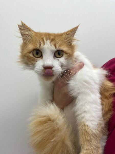 | 特徴(性格など) | おっとりした男の子です! 多頭飼育崩壊現場から保護されました。 ちょっぴり怖がりさんで、まだ保護猫室のトイレがあるスペースに隠れていることが多いです まだ緊張していますが、最近は一人でひっそりお部屋を冒険している時も いつも尻尾をブンブンワンちゃんのように振っています! しつこくされると嫌がる、猫らしい性格でもあります! 長毛でふわふわ、お腹側は白くてかわいいです? |