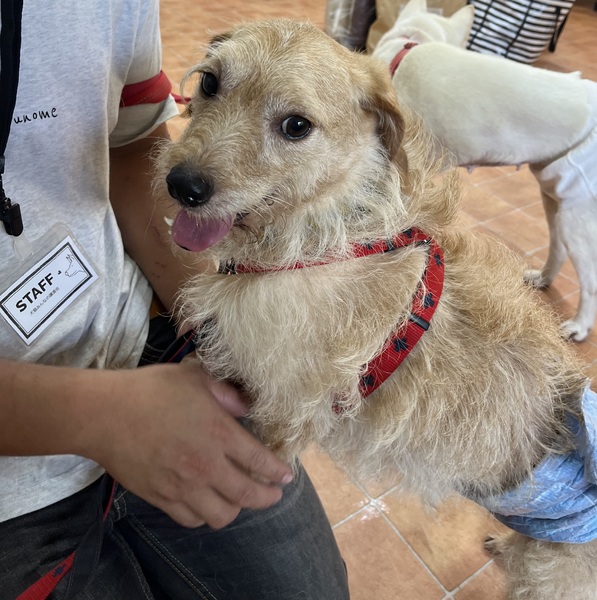 | 特徴(性格など) | イエローワイヤーコート 穏やかに過ごしています。 構ってあげると、とても朗らかに喜びます。 人馴れしています。 社会性に縁がなかったことから、臆病な一面があります。 普段のお留守番は、時々ケージ内で8時間位過ごしています。 ドライブはケージの中で、車酔いせずにいられます。 先住犬との関係は、干渉はあまりせず しつこくされるのは嫌いな様なので、単頭飼育を希望します。 (お互いに干渉することのない相性であれば、多頭飼育も可能) 環境の変化により、ご家族に吠える様になってしまったりする可能性があります。 この子のペースで躾をしていただけるかたにご縁を繋ぎたいと思います。 |