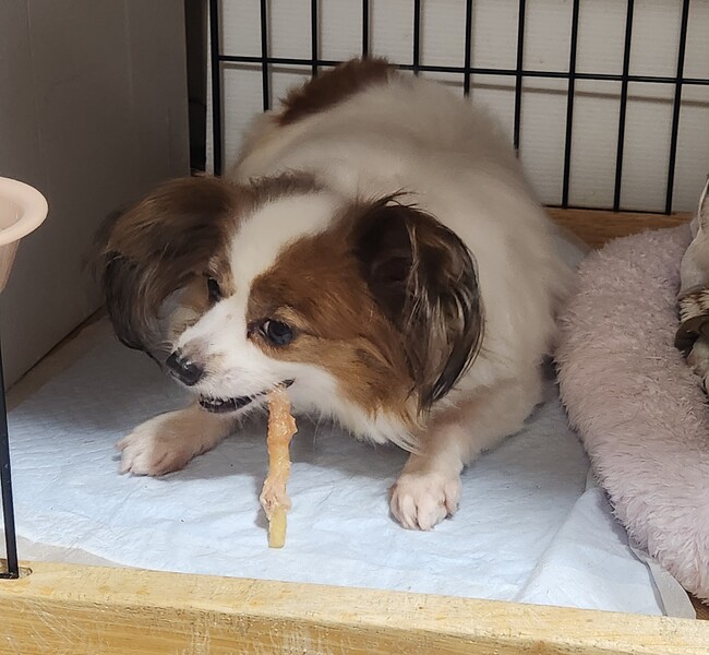 | 特徴(性格など) | 名前:プリプリちゃん 年齢:推定6~7歳 ぐらい 性別:メス 体重:6.1キロ (肥満体型なので、ダイエット中。) 避妊手術済み マイクロチップ挿入と登録済み 歯のスケーリングと抜歯済み 心音( 異常なし ) 検便( - ) 耳ダニ( - ) 血液検査済み(若干高い低いありますが、異常なし ) フィラリア検査:陰性 6種混合ワクチン 1回済み(2025年1月) ノミダニ駆虫薬投薬済み 膝蓋骨脱臼(パテラ)左右ともにグレード4程度。 (外れたまま固まってしまっているようで現段階では痛みは無いようです。) 胆泥が少し溜まっていますが、現段階では投薬無し。 【2025年4月実施予定の医療行為。】 狂犬病予防接種と登録 まだ保護して間もない為、緊張気味のプリプリちゃん。 他の犬猫とも相性が合えば、問題なく生活出来ます。 (先住犬猫が居てる場合は要相談。) トイレトレーニング中。 ペットシートとお散歩で成功率もだいぶ上がってきてるので、おむつを外して生活しています。 食べることが大好きですが、 足腰の負担を考えて適正体重までダイエット中です。 お散歩も怖々ですが、歩いてお外でも排泄出来るようになってきました。 一般家庭での生活にまだ慣れなくて自宅内ではゲージ内やベッドなどで固まってる事が多かったのですが、少しずつ表情出てきて明るくなってきました♪ 一時預かりスタッフのブログで プリプリちゃんの最新の様子が見れます。 https://ameblo.jp/azukikun2013/ |