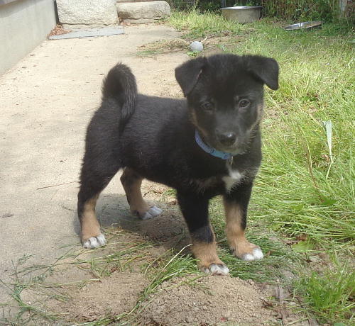 | 特徴(性格など) | 性格:人の手により育ちましたので人が大好きな甘えん坊の子犬、仲間の子犬たちと元気に遊び社会性を学習中です。ムダ吠えもせず飼いやすい子犬です。トイレの躾けも覚えました。 今日の体重:4kg 医療面:健診済み・検便(-)・ノミダニ予防 初回、7種混合ワクチン接種済み(4月5日) |