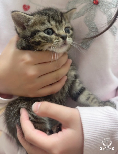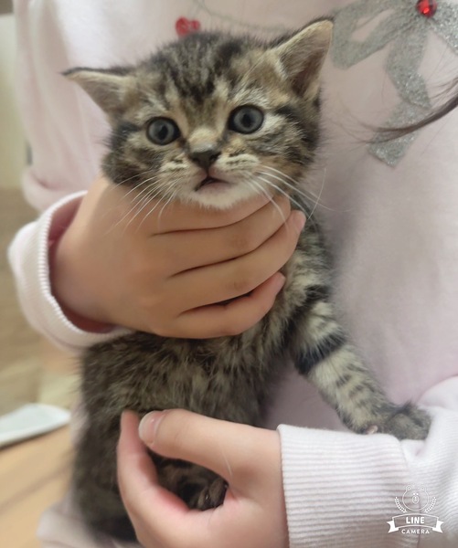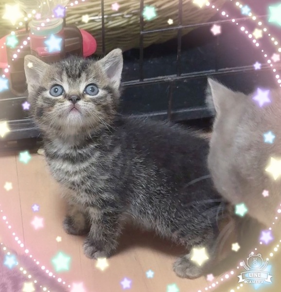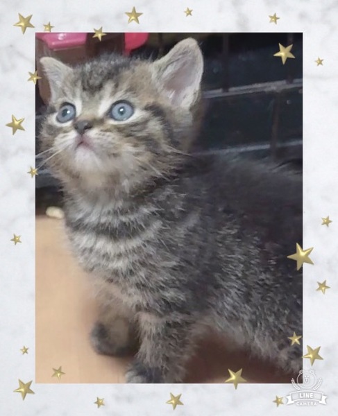 | 特徴(性格など) | しっかり育ってます 性格も穏やかで可愛いです 男の子はおそらく大柄になると思います 見た目はブリティッシュ系のまん丸フェイス ブラウンタビー 健康状態 現時点では問題ありませんが、仔猫は非常に弱い生き物ですので注意しています 健康診断とワクチン後の引き渡しになります |