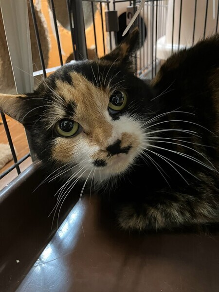 | 特徴(性格など) | 2020.9.1生まれ(推定) 毛色:三毛 お顔と指先、身体の内側に白い部分のある、素敵な三毛柄さん♡ 右後ろ脚がありませんが、元気にぴょんぴょんとウサギさんのように動いています。 ちょっぴりビビリなところはありますが、攻撃性はなくナデナデされるのも大好き! 保護部屋の猫達とも程よい距離を保って、穏やかに過ごしています。 |