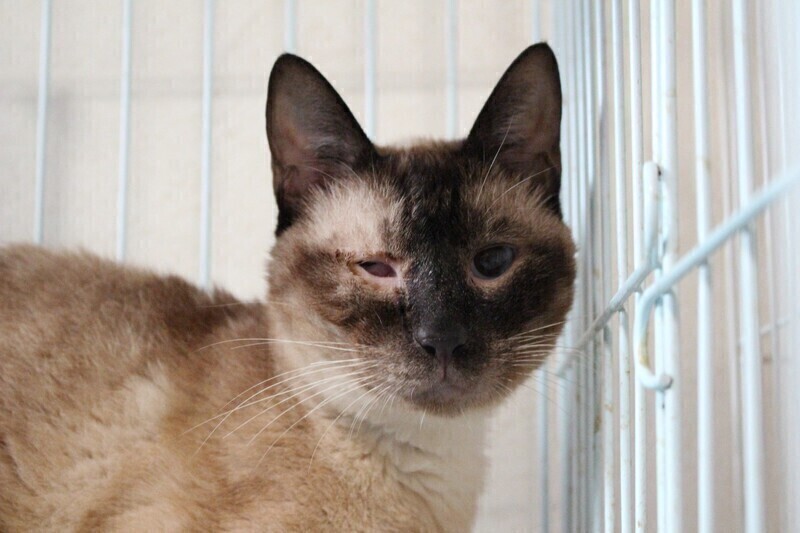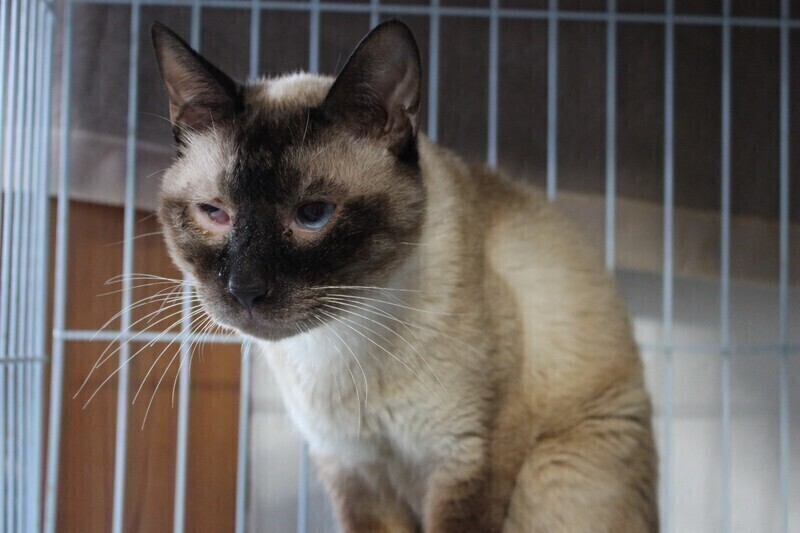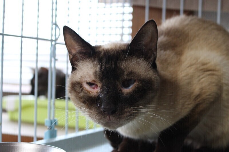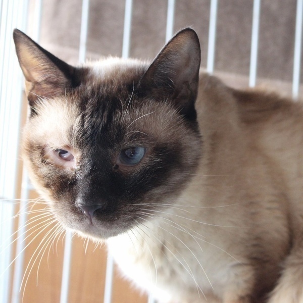 | 特徴(性格など) | シャム猫の男の子、シャイくんです。 すこし怖がりさんですが、気は優しく怒りません。 ひとりが落ち着くようなのでケージで生活してもらっていますが、最近は猫じゃらしに反応してくれるようになりました。 チュールやウエットタイプのフードが大好きで、ごはんを見せるととても喜びます^^ シャイくんが安心して過ごせるおうちをさがしています! 当団体のホームページや他のサイトでも同時に募集を行っています。少しでも気になられましたら、どうぞお早めにお問い合わせくださいね。 |