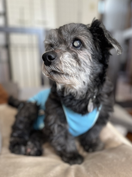 特徴(性格など) | ★☆性格☆★ 見た目とは裏腹に(?)、とっても甘えん坊です。 ソファに上ってきて体をすりつけてきては、座っている人間の上に乗っかってきたり、横にピタッと寄り添ってスヤスヤ寝たり。人間が離れるとすぐに起きて所在を確認するほどです。 それくらいの甘えん坊なので少し分離不安気味で、人がいなくなると鼻鳴きします。吠えたてるまではしませんが、ひとりでいることに寂しさを感じるタイプではあります。 ===== ぶんたは、白内障が進んでいるため目がほとんど見えていません。ただ、そんなハンデを感じさせないくらいいろんなところを歩き回りますし、好奇心旺盛で物怖じなどもいっさいありません。 目が見えないぶん聴力がとても良く、呼べばすぐに寄ってきてくれますし、言葉でのコミュニケーションは取りやすいです。 ただ…チャイムの音には吠えます。 ★☆ごはん☆★ よく食べます。 保護当時の皮膚の状態が悪く、その原因がわかっていなかったため、念のため今も皮膚疾患用のフードとおやつを与えています。 ===== 去勢手術時に状態の悪い歯を抜く処置もしてもらっており、上の犬歯や奥歯はほとんど残っていない状態です。それでも食欲は旺盛で、残った歯で上手に噛み砕いて…とにかくよく食べます(笑)。 ★☆散歩☆★ 毎日の散歩はウキウキな感じで、よく歩きます。 目が見えていないため音とニオイだけが頼りですが、それにしてもよく歩きます。 ただ、心臓に負担がかかるような散歩は避けないと…なので(「健康状態」の項で後述)、急な坂道は迂回したり。また、獣医師から「時間は30分程度で良いのでは」とのことで、朝晩30分ずつではありますが、本人はそれで満足そうです。 ちなみに…散歩後、家に入るまでに足拭きをするんですが、そのときのぶんたが大人しくてとってもいいコ!散歩前に服を着るのも、なんなら自分から足を通してくるくらいで、お世話のしやすさは満点です!! ★☆トイレ☆★ おしっこ、うんちともに外派です。 ただし、同居犬がいる場合にはマーキングのような形で室内ですることもあります。 同居犬との相性もあるので一概には言えませんが、先住犬がいるご家庭でのお迎えの場合はマーキング対策などが必要になるかもしれません。 ★☆留守番☆★ 留守番はできなくはないですが、人がいなくなって一定時間は鼻鳴きします。その状態に疲れると(?)、鼻鳴きはなくなって静かになります。 現在のところ留守番の最長時間は5時間程度ですが、誤飲や粗相をすることもなく、フリーで大人しく過ごすことができています。ケージやサークル、クレートは苦手のようで、現在トレーニング中です。 ★☆他の犬との関係性☆★ 短期間ではありますが他の保護犬との同居期間があり、そのときは概ね良好な関係のもとに過ごせていました。 ただしその際も、初対面のときは上に乗っかかろうとするなど激しめに絡んでいきました。一緒に過ごすうちに慣れてきた…という感じです。 散歩時に出会う犬に関しても、たいていの場合、相手が犬だと認識すると「ガウッ」とひと唸りする感じ。犬付き合いは得意な方ではないと思われます。 ※目が見えず鼻もあまり良くないので、自分から他の犬に気づいて近づいていったりすることはほとんどありません。 ★☆健康状態☆★ 性格の項でも触れていますが、白内障がかなり進行しており、目はほとんど見えていません。 また、血液検査、腹部と心臓のエコー検査の結果、気になるところが出てきています。主に気になるのは以下の3点です。 1.心臓の弁膜症のステージB2&高血圧 2.前立腺肥大 3.皮膚の状態 ★心臓の弁膜症のステージB2&高血圧 心雑音と僧帽弁逆流、心拡大があり、ステージとしてはB2。 現状はフォルテコールとピモベハートを服用していて、今後も継続的な投薬治療が必要です。 ★前立腺肥大 炎症に発展しているふうは認められないものの、結腸が圧迫されるなど排便への影響が懸念されています。 検査当時は未去勢で、その影響が少なからずあったものと考えられています。現在は去勢手術も済み、様子を見ているところです。 ★皮膚の状態 保護当時、皮膚の状態が悪く、とくに足先のマラセチアの症状が重かったのですが、薬の塗布や定期的なシャンプーなどでだいぶ改善されてきました。 マラセチアに関しては治療を継続しています。 ★その他 ・胆嚢に胆泥が多めに溜まっている ・副腎が厚くなってきている ・背骨が変形しはじめている などを指摘されましたが、いずれも年齢なりのもの&進行の兆候がないため、今のところは心配ない、との見立てでした。 もちろん、これからまた年を重ねるにつれて状況が変化する可能性もありますが、これらに関しては一旦、静観で大丈夫、ということでした。 救いなのは、健康状態が良くはないものの、今すぐ命の危険がある…といった深刻な状態ではない、ということでしょうか。 とはいえ、心臓の治療は今後も継続が必要なので