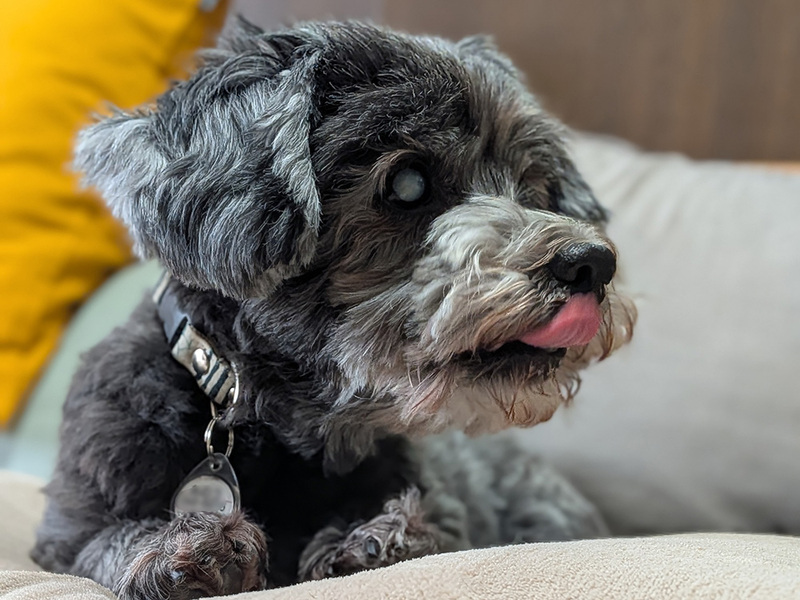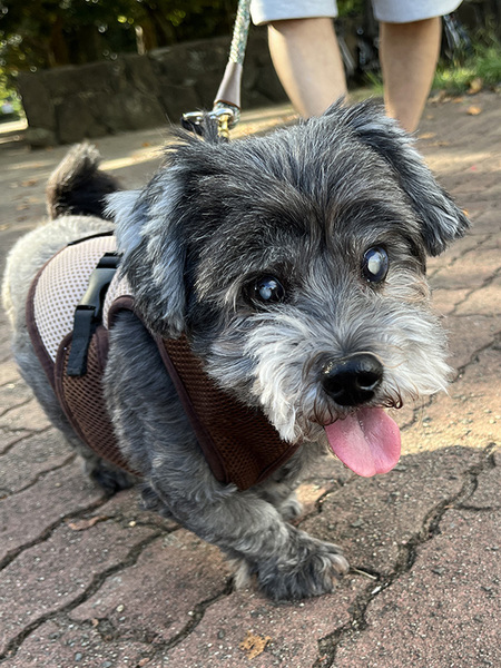 | 特徴(性格など) | ★☆性格☆★ 見た目とは裏腹に(?)、とっても甘えん坊です。 ソファに上ってきて体をすりつけてきては、座っている人間の上に乗っかってきたり、横にピタッと寄り添ってスヤスヤ寝たり。人間が離れるとすぐに起きて所在を確認するほどです。 それくらいの甘えん坊なので、人がいなくなると遠吠えします。ひとりでいることに寂しさを感じるタイプです。 ===== ぶんたは、白内障が進んでいるため目がほとんど見えていません。ただ、そんなハンデを感じさせないくらいいろんなところを歩き回りますし、好奇心旺盛で物怖じなどもいっさいありません。 目が見えないぶん聴力がとても良く、呼べばすぐに寄ってきてくれますし、言葉でのコミュニケーションは取りやすいです。 そして、どのようなケアに対しても従順で、誰がおこなっても大人しく受け入れてくれます。耳掃除と歯磨きは好きではないものの、嫌がって困るようなことは何もありません。 ★☆ごはん☆★ 選り好みがまったくなく、何でも残さずによく食べます。 健康状態の項で後述しますが、皮膚トラブルが起こりやすく、チキンと牛の食物アレルギーの可能性があります。そのため、今はそれ以外をタンパク源とした食べ物を与えています。 ===== 去勢手術時に状態の悪い歯を抜く処置もしてもらっており、上の犬歯や奥歯はほとんど残っていない状態です。それでも食欲は旺盛で、残った歯で上手に噛み砕いて…とにかくよく食べます(笑)。 ★☆散歩☆★ 毎日の散歩はウキウキな感じで、よく歩きます。 目が見えていないため音とニオイだけが頼りですが、それにしてもよく歩きます。 ただ、心臓に負担がかかるような散歩は避けないと…なので(「健康状態」の項で後述)、急な坂道は迂回したり。また、獣医師から「時間は30分程度で良いのでは」とのことで、朝晩30分ずつではありますが、本人はそれで満足そうです。 ちなみに…散歩後、家に入るまでに足拭きをするんですが、そのときのぶんたが大人しくてとってもいいコ!散歩前に服を着るのも、なんなら自分から足を通してくるくらいで、お世話のしやすさは満点です!! ★☆トイレ☆★ おしっこ、うんちともに外派です。そのため、朝晩1日2回の散歩は必須です。 ちなみにぶんた、雨が嫌いで、雨天時の散歩はテンションがとても低いです?それでもおしっこ&うんちは外…なので、散歩は必須となります。 ただ、おしっこもうんちも散歩に出て割と早めに済ませてくれるので、楽と言えば楽です。 ★☆留守番☆★ 現在のところ留守番の最長時間は5時間程度。誤飲や粗相をすることもなく、フリーで過ごすことはできますが、人がいなくなるとしばらくは遠吠えしたり鼻鳴きします。 その状態に疲れると(?)吠えたり鳴いたりは減りますが(なくなりはしません)、そわそわと落ち着かない様子。分離不安と言って良いと思われます。 現在、クレートトレーニングをおこなっており、クレートそのものへの抵抗はありません。ひとりでも落ち着いて過ごせるように、少しずつ練習を続けています。 ★☆他の犬との関係性☆★ 現在、同居しているまることはつかず離れず適度な距離感で過ごせていますし、ケンカしたりすることもありません。 時期によって新入りを迎えることもあるのですが、とくやらん、幸太郎など他のコが来たときも普段の様子と変わることなく、とても穏やかに過ごせています。 ただ、散歩時に出会う犬に関しては、相性にもよりますが相手が犬だと認識すると「ガウッ」とひと唸りすることがあります。 ※目があまり見えず鼻もあまり良くないので、自分から他の犬に気づいて近づいていったりすることはほとんどありません。 ★☆健康状態☆★ 性格の項でも触れているように、白内障がかなり進行しており、目は光は感じている様子ですがほとんど見えていません。 また、血液検査、腹部と心臓のエコー検査の結果、主に気になるのは以下の2点です。 ★心臓の弁膜症のステージB2&高血圧 心雑音と僧帽弁逆流、心拡大があり、ステージとしてはB2。 現状はフォルテコールとピモベハートを服用していて、今後も継続的な投薬と定期的な検査が必要です。 なお、2025年9月の検査では病状は進行しておらず、状態を維持できていました。 ★マラセチア 保護当時、皮膚と耳の中の状態が悪く、とくに足先のマラセチアの症状が重かったのですが、薬の塗布や定期的なマラセチア用シャンプーなどで改善されました。 ただし、マラセチアは再発しやすいので現在も2週に1回足先だけ、月に1回は全身、それぞれマラセチア用シャンプーをおこなっています。 また、皮膚のかゆみが起こりやすいため、状態に応じて内服薬と塗り薬でかゆみをコントロールしています。 ★その他 ・胆嚢に胆泥が多めに溜まっている ・副腎が厚くなってきている ・左の内腸骨リンパ節が腫れている(皮膚炎由来) ・背骨が変形しはじめている などを指摘されましたが、いずれも年齢な