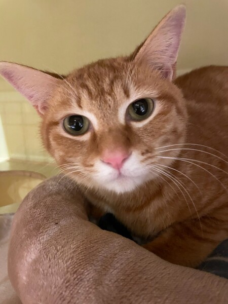 | 特徴(性格など) | 慣れるまでは怖がりさんで高いところから様子を伺っていたり、兄弟のジニの後ろに隠れてることが多いですが、本当は甘えん坊ないじらしい子です。 慣れると爪研ぎやおもちゃで遊びます!ジニととっても仲良しです。 | ||