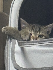 | 特徴(性格など) | とても甘えん坊な子でよちよち歩きで着いてきてくれます。 また、濃い色のキジトラ君です。よく食べ、よく寝ます! |