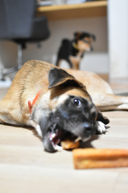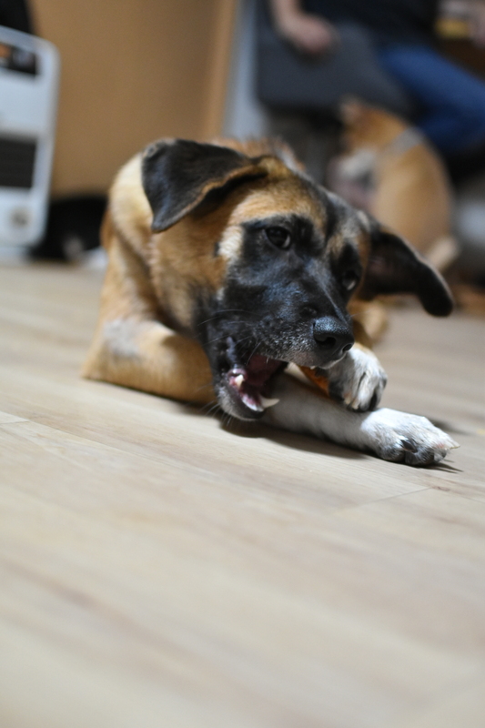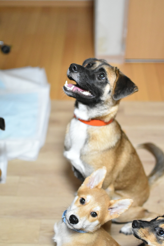 | 特徴(性格など) | かしこくてかわいくておちゃめで、人懐っこい子犬です。 自分もまだ子犬なのに、赤ちゃん犬たちの相手を優しくしてあげたり、とてもいい子です。 現在15キロ前後、成犬時予想体重20キロ以上、大きめ中型犬サイズになります。 お散歩も上手に出来ます。 後ろ足の股関節形成不全あり。運動して筋肉をつけて今後歩行に困らないように鍛錬しています。 |