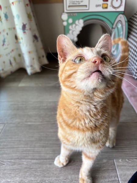 | 特徴(性格など) | ☆☆☆ご希望の方は、以下のアンケートフォームにご記入の上、送信してください☆☆☆ ねこ親希望アンケート→ http://chibawan.net/contactform_cat 【猫No】3912 【愛称】こなん 【性別】オス 【年齢】推定4才(21/04頃生) 【毛色】茶トラ 【体重】2.5kg 【状態】 去勢手術済、ワクチン接種済(25/03/25)、血液検査済(エイズ−、白血病−)、マイクロチップ装着済、ノミダニ駆除済、駆虫済、トイレ躾済 【預かり場所】 我孫子市 【日記】https://www.instagram.com/pupu_pipi_edamame/?hl=ja Instagram pupu_pipi_edamame 【経緯】千葉県動物愛護センター東葛飾支所から引き出し 【性格】 まだ預かり始めたばかりなので性格はこれから色々と見えてくると思いますがとにかく人が好きです。 初めての場所でも初めての人でも全然大丈夫な陽キャ猫です。初めて猫を迎えようと考えている方でも大丈夫だと思えるくらい物怖じしないとても甘えん坊な男の子です。鳴き声は子猫のように可愛らしいのですがお口の中はおじさんという感じなので年齢不詳です。おもちゃでも遊ぶ事が楽しいみたいです。 まだ来たばかりなのであまり載せていませんが普段の生活などインスタに載せていますので是非見てください。 【備考】環境の変化などで体調の急変なども考えられる為、速やかに動物病院を受診してくださる方を希望しています。 尚、猫の年齢を考えて60歳以上の方からのお申し込みはお断りさせていただく場合がございます。 【その他】 愛護センターに収容される前に事故に遭ったのか下顎が歪んでいて前歯がガタガタに歪み左下の犬歯はが根元で壊死した状態だったので去勢手術時に抜歯しています。 食事には特別問題ないと思います。 以下の条件をご快諾頂き、預かり宅から1時間半以内のご家庭からのアンケートをお待ちしております。 ・愛情いっぱいの終生飼養 ・ネコにあった生活スタイル ・完全室内飼育および脱走防止対策、ゲージの設置 ・定期的なワクチン接種などの健康管理 ・譲渡後も猫の様子をご連絡頂ける方 なお、お世話をする方がご高齢の方、単身者のお申し込みにつきましては、お断りする場合がございますので予めご了承ください。 |