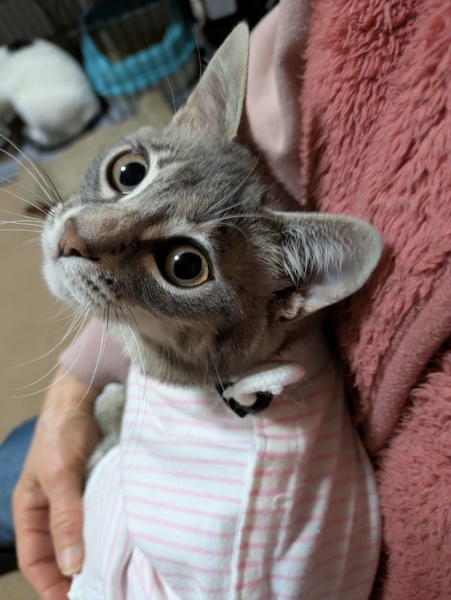 | 特徴(性格など) | グレー系トラちゃん 大人し目な女子てす 女のコなので少し警戒心がありますが 抱っこします なでなでもゴロゴロも | ||