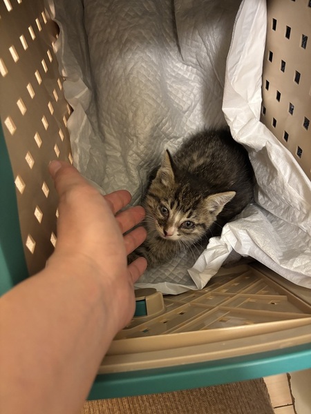 | 里親募集する理由 | 息子がバイト先の近くで泣いてるこの子を見つけ、しばらく様子を見ていましたが、近くに親猫がいる様子もなく、涙目で目やにもすごく、雨予報も出ていたので保護しました。 | ||