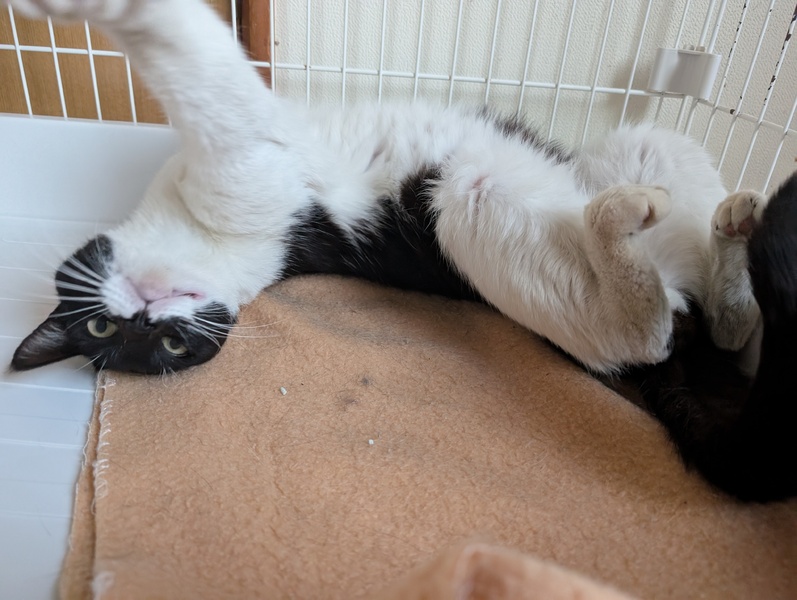 | 特徴(性格など) | 4月20日保護施設に来た日のフードは完食、撫でるとスリスリして甘えてきます へそ天にもなってとても人慣れした男の子で場所見知り、人見知りがほとんどありません 超の付くゴロスリの男の子です ノミダニ駆除済み 4月24日去勢手術予定 食欲があってとても元気な男の子です |