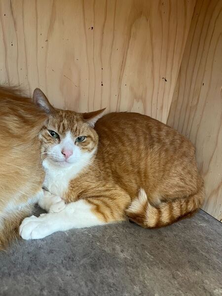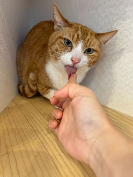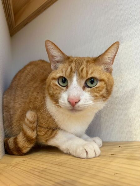 | 特徴(性格など) | ちょっぴり臆病なしっぽくんです! 普段はトイレがあるスペースに隠れていることが多いです! 他の猫ちゃんが大好きでよくくっついて寝ている光景を目に します☺️ 最近は隠れ家からよく出てくるようになりました! 触られるのが大好きで本当によく甘えるようになりスタッフもメロメロです? 茶白のハチワレ柄です!白いおててがかわいいです? |