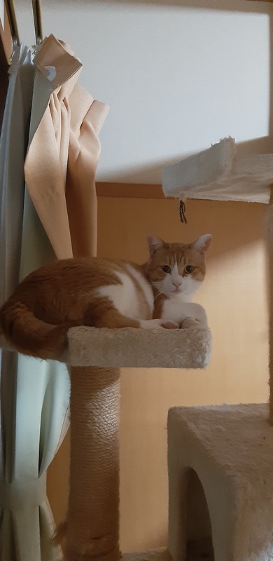 | 特徴(性格など) | とてもやんちゃな茶白のオス猫です。 良く食べ良く寝て健康です。 保護してから去勢しました。 |